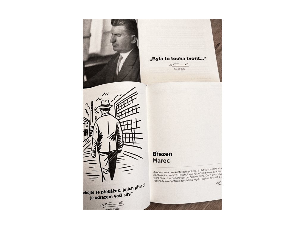 Stejně jako Baťa věřil, že člověk roste skrze vlastní zkušenost, i vy můžete objevovat nové cesty a proměňovat myšlenky v činy. Ať vám tento diář pomůže vytvořit nejen lepší rok, ale i život, který bude naplněný touhou tvořit. Každý týden na vás čeká inspirativní myšlenka Tomáše Bati – vybrány byly ty méně známé.
