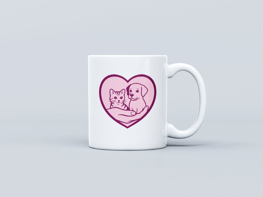 Některé lásky přicházejí nečekaně – a trvají navždy. Tento hrnek s růžovo-fialovým motivem srdce, ve kterém se schoulila kočka a pes v bezpečných Dobrých rukou, nese vše, co chceme říct o péči, kterou našim zvířatům dáváme. Druhou stranu zdobí slogan „Láska na první pohlazení“ – protože přesně tak to s našimi chlupáči bývá.