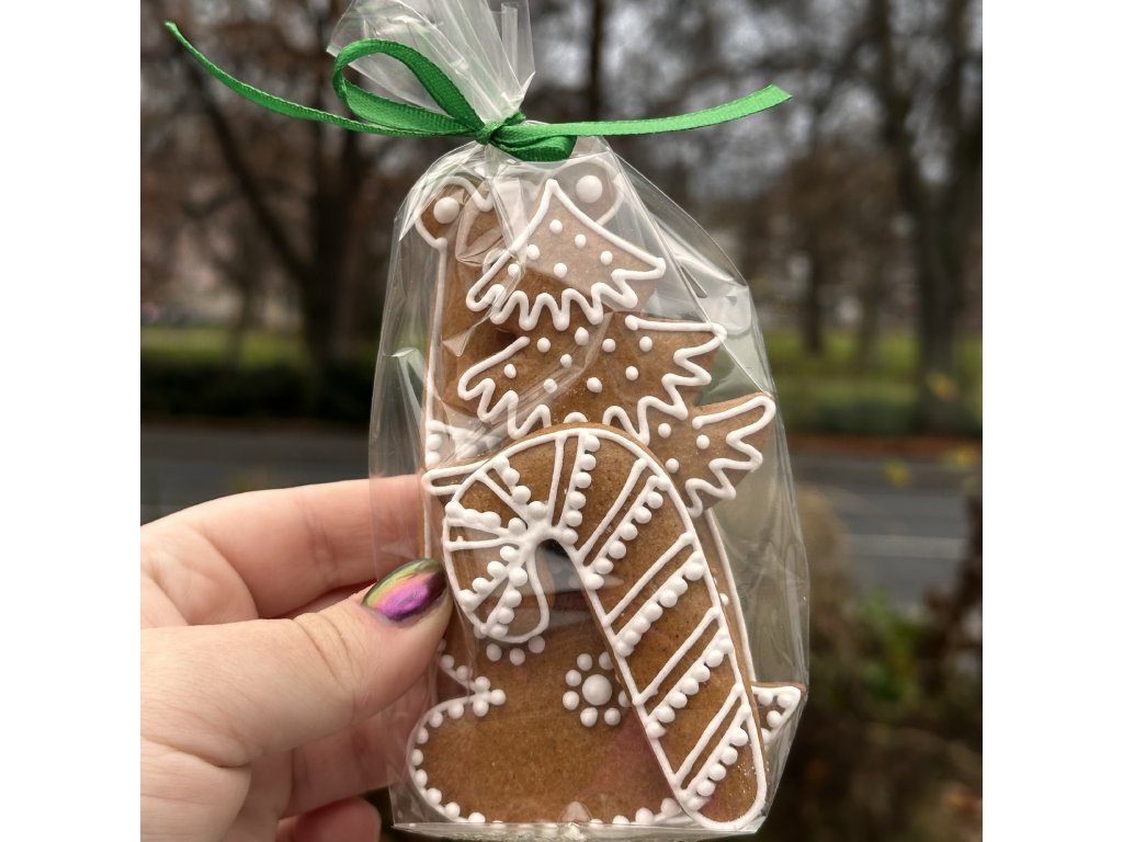 Balíček s mixem vánočních perníčků. Jsou krásně nazdobené i chutné. Různé motivy, v každém balíčku jinak nazdobené perníčky.