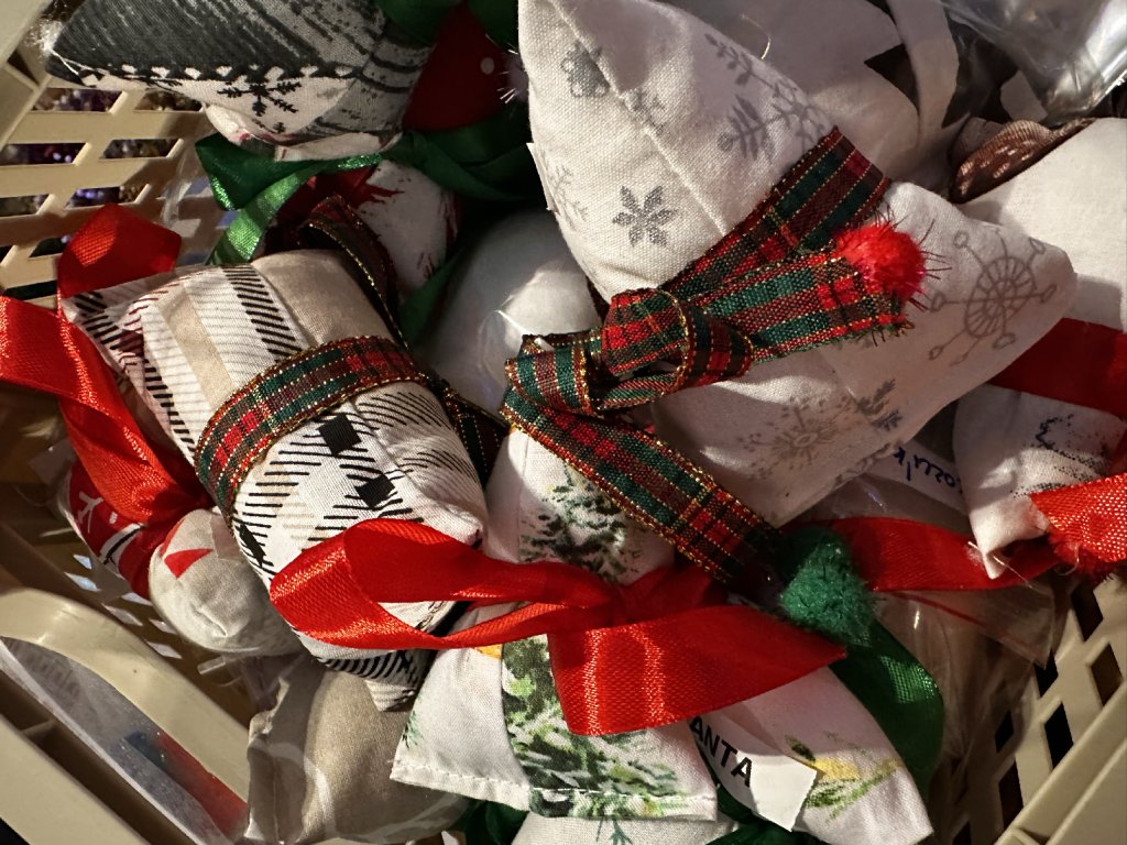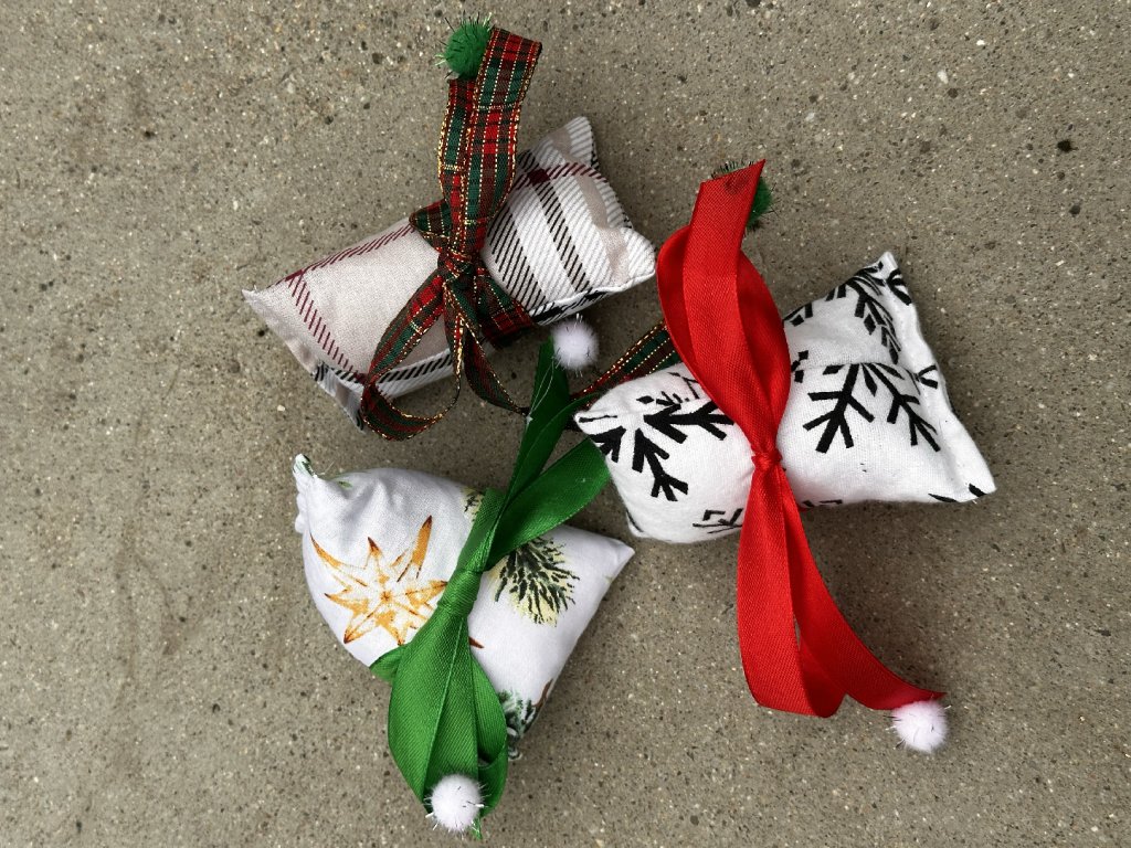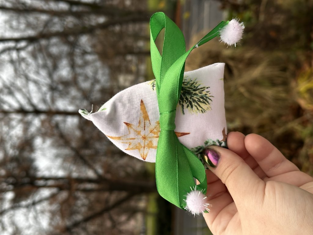 Na výběr ze dvou náplní – šanta kočičí či kozlík lékařský. Pytlíčky jsou s láskou šité naší dobrovolnicí a tentokrát z vánočních či zimních látek. Každý pytlíček je ovázán stužkou s bambulkami.